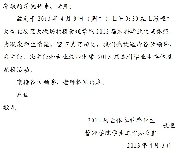 管理学院2013届本科毕业生集体照拍摄邀请函