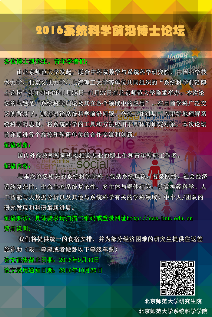 关于2016年系统科学前沿博士论坛的通知