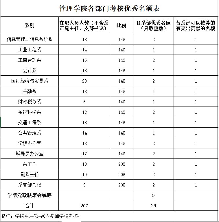 附件22018年管理学院各部门考核优秀名额表