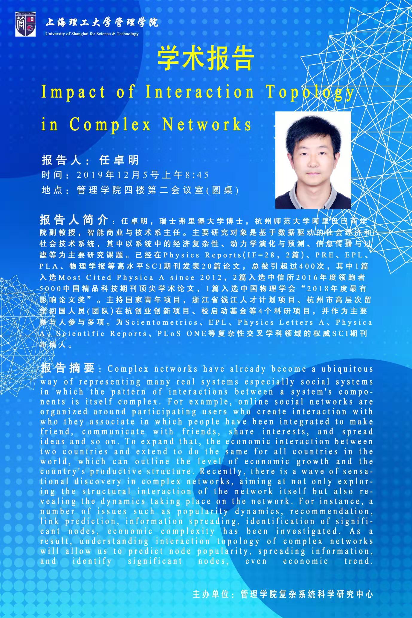 学术报告:Impact of Interaction Topology in Complex Networks