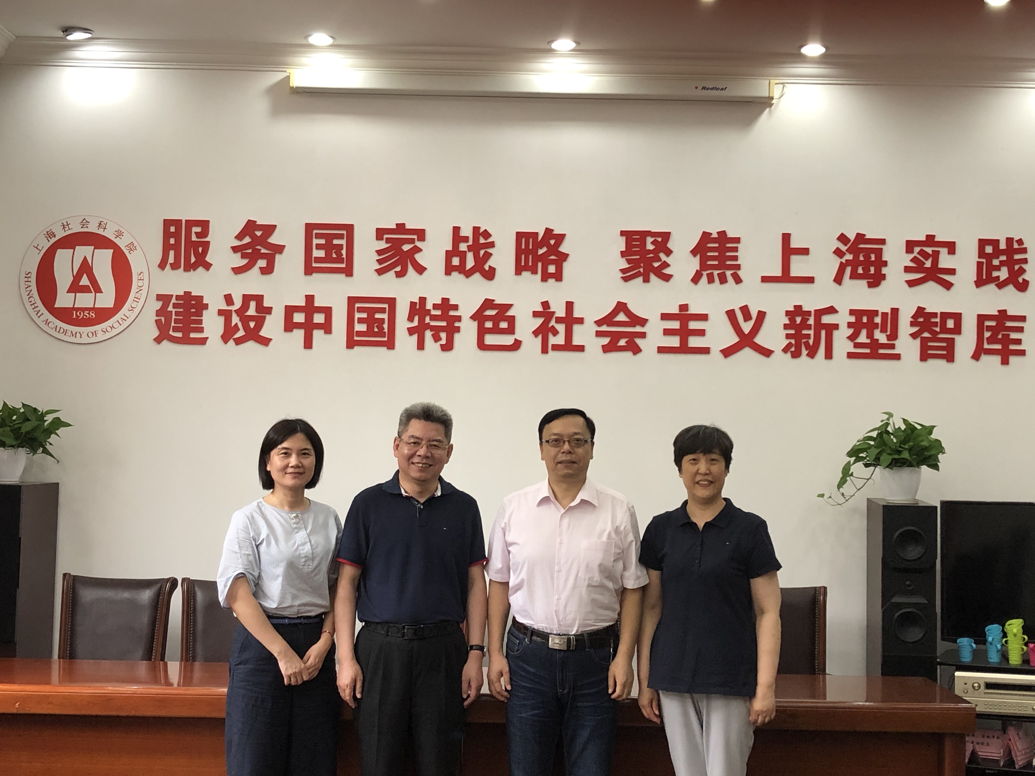 7月24日下午,管理学院党委书记汪维、院长赵来军、党委副书记蒲莹莹、校友联络员袁军伟一行赴上海社会科学院拜访我校校友、上海社会科学院副院长干春晖教授。
