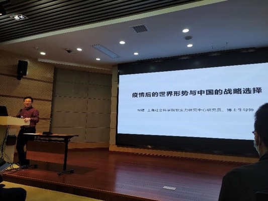 10月29日,管理学院工商管理系邀请了上海市社会科学院软实力研究中心主任、博士生导师胡键教授开展了主题为“疫情后的世界形势与中国的战略选择”的讲座。讲座由副院长、工商管理课程思政领航团队负责人何建佳主持,工商管理系教师和近百名学生参加了讲座。