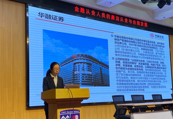 2020年12月2日,金融系在管理学院第一会议室举行了主题为金融从业人员的职业选择、廉洁从业及合规发展教育讲座,2018级金融专业本科生全体同学参加了本次学习。本次讲座邀请了华融证券中山东二路营业部投资经理吴颖悦、财富总监罗贤强以及投行部执行总经理黄岩。讲座由金融系系主任张青龙主持。