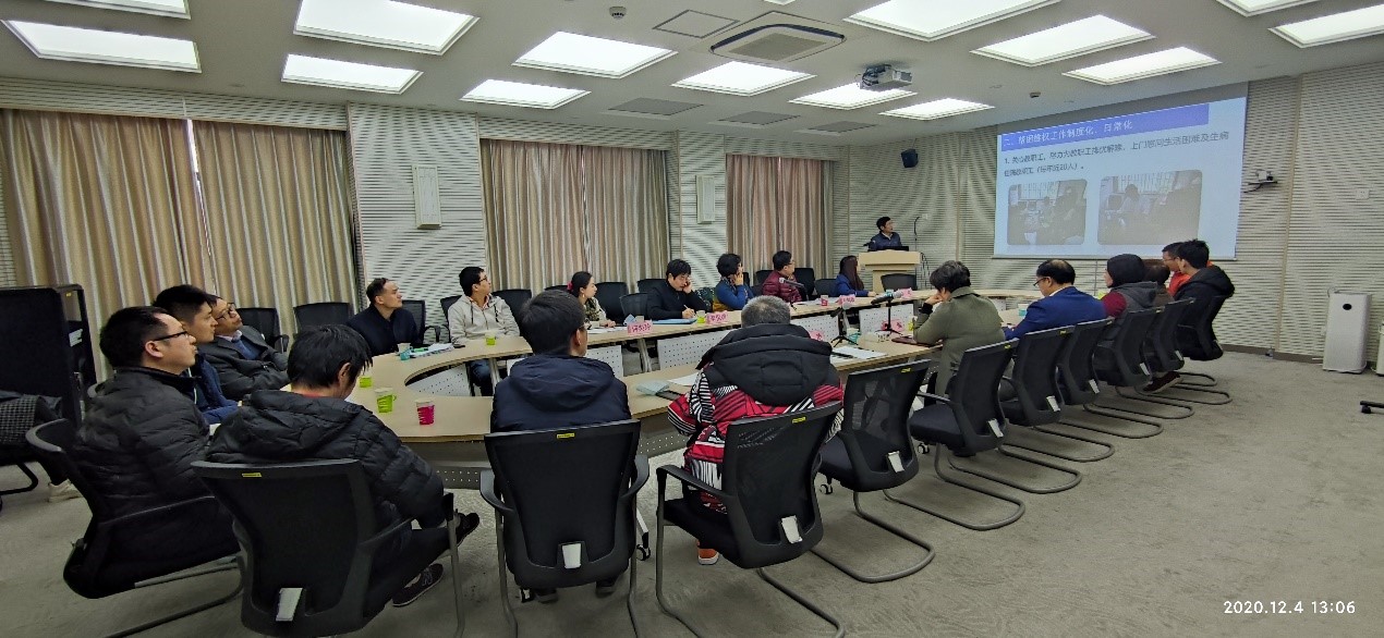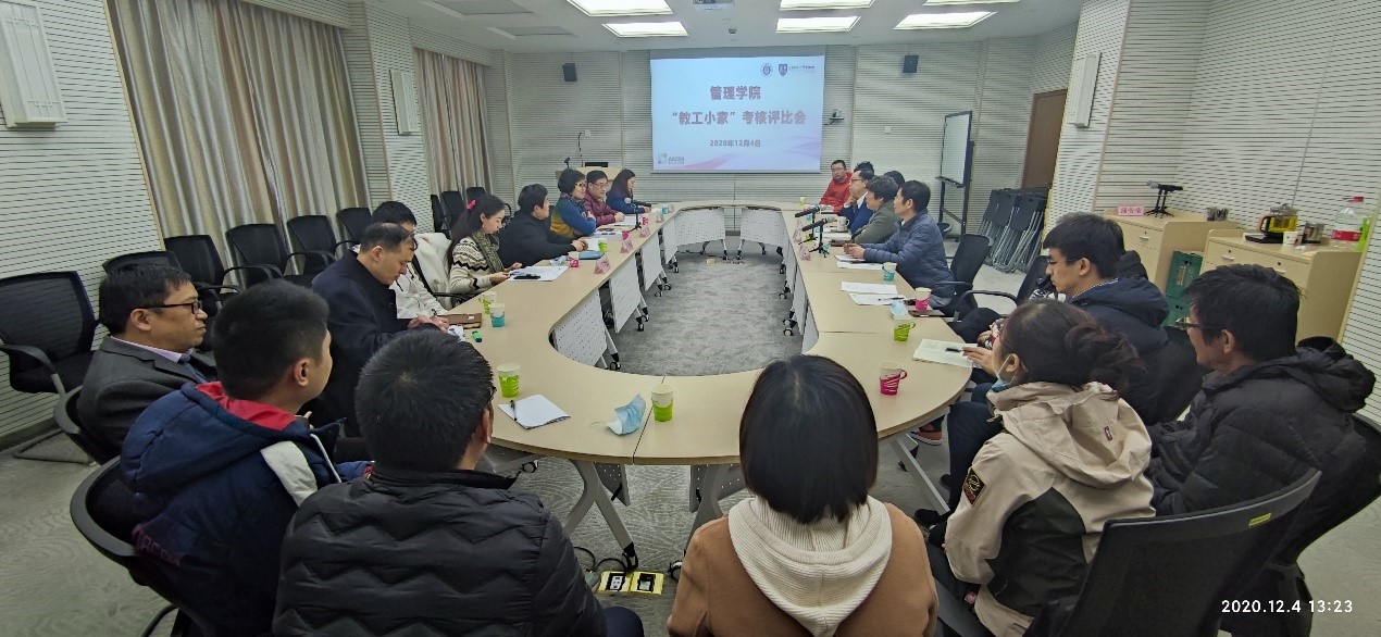 2020年12月4日下午一点,2016-2019年度“教工小家”等级考核评比专家组莅临管理学院,主持教工座谈会,听取管理学院“教工小家”建设情况汇报,并实地查阅工会工作台账,考察管理学院教工活动室。本次专家检查由中国教育工会上海理工大学委员会常务副主席朱莉领队,李保国、冯鹤敏、李花、何奕玲等兄弟院系工会主席参加。管理学院党委书记汪维、院长赵来军参加会议,热诚欢迎专家组莅临检查、指导工作。