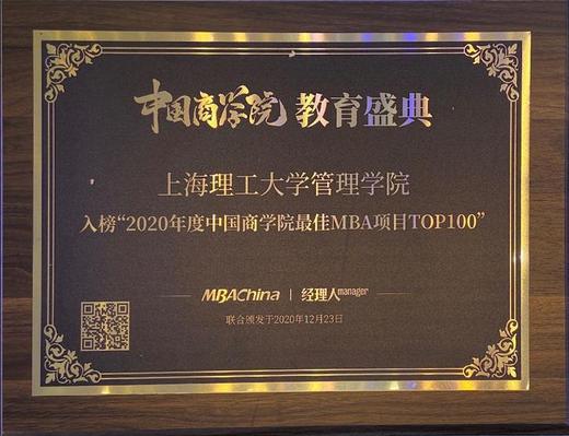 上海理工大学管理学院入榜“2020年度中国商学院最佳MBA项目TOP100”