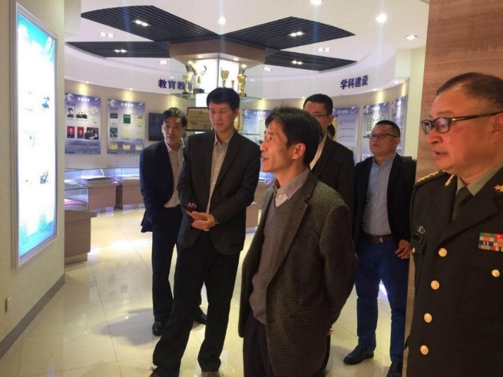 吴忠副校长(左3)与周溪召(左2)访问国防科技大学