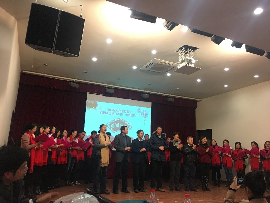 (与财政金融系教师合唱“相亲相爱一家人”)