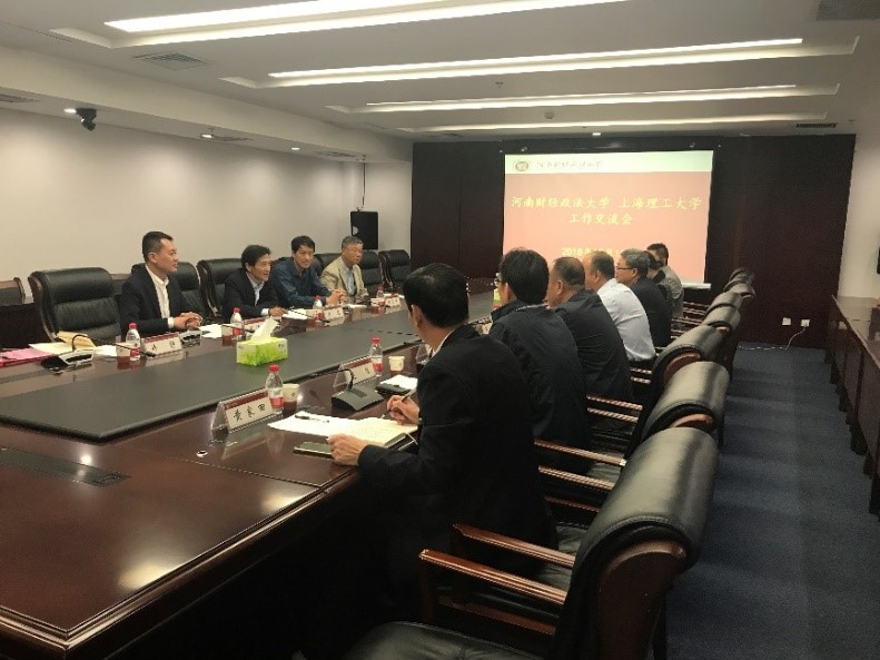 吴忠副校长(左2)、周溪召院长(左3)一行赴河南财经政法大学交流学习