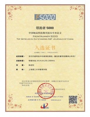 近日,管理学院刘勇副教授与马良教授在中国精品科技期刊《控制与决策》(EI)2012年06期上合作发表的论文《函数优化的蜂群算法》入选2014年度“领跑者5000-中国精品科技期刊顶尖学术论文”。郭进利教授在中国精品科技期刊、中国权威性物理刊物《物理学报》(SCI)2014年09期上发表的论文《超网络中标度律的涌现》及2014年20期上发表的论文《非均齐超网络中标度律的涌现——富者愈富导致幂律分布吗?》入选2019年度“领跑者5000-中国精品科技期刊顶尖学术论文”。