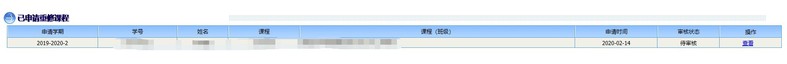 第五步,查看已申请重修课程,如审核状态显示为“审核通过”,则申请重修的课程会出现在“个人课表”中。
