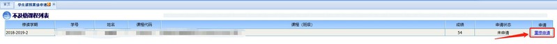 第三步,在不及格课程列表中选择需要重修的课程,点击“重修申请”。