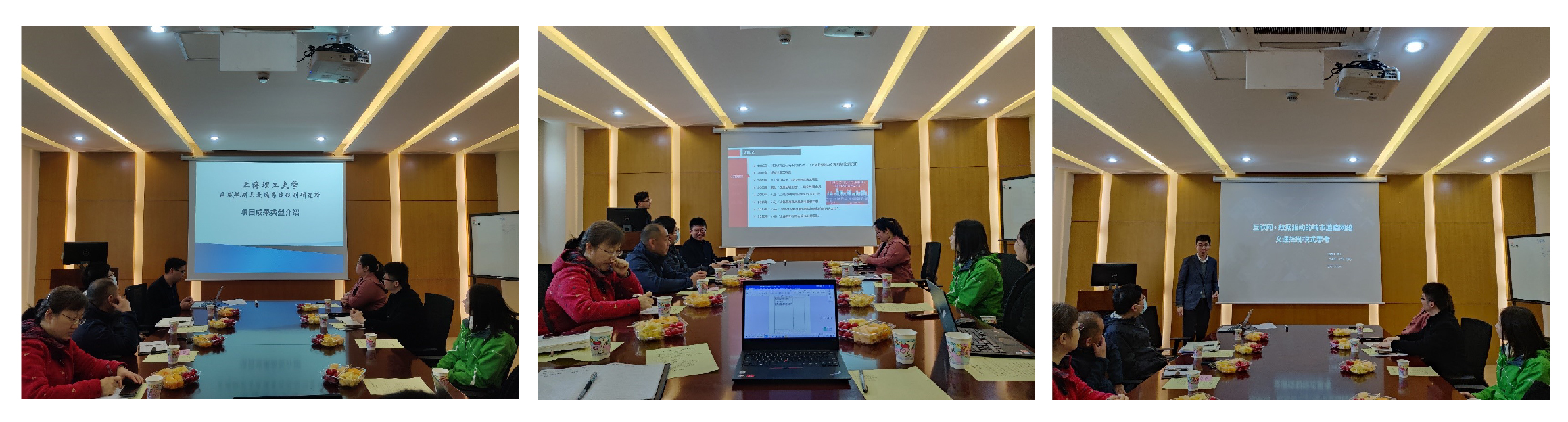 会议伊始,刘魏巍副教授对上海公安学院的来访表示热烈欢迎,介绍本次交流议程和背景情况,并简单致辞。赵靖副教授对交通系统工程系作简单介绍,讲解了交通系统工程系的发展历程、师资力量及未来发展方向,着重提出我们的师资力量涵盖交通工程学领域的各个方向,能够促进学生多元化发展。刘魏巍副教授对上海理工大学区域规划与交通系统规划研究所的项目成果类型进行展示。我系王嘉文老师作为教师代表,向来访人员介绍其研究方向。主要讲述了智能网联环境下对城市道路网络交通控制模式的思考,将时下比较热门的学术背景——互联网+大数据,与城市交通控制结合,提出新想法,并与大家一同探讨。