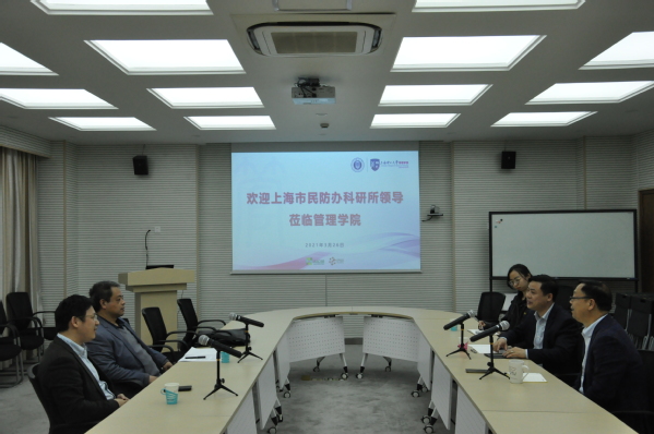 为贯彻落实习近平总书记对人民防空工作的指示精神,进一步提升科技铸盾强防作用,我校于2020年与上海市民防办公室签署了合作协议,为具体落实会议议题,3月26日下午,上海市民防办科研所书记姚保华莅临管理学院进行调研和交流,我院院长赵来军、副院长何建佳及校科研院副院长裴颂文等参加了此次交流。