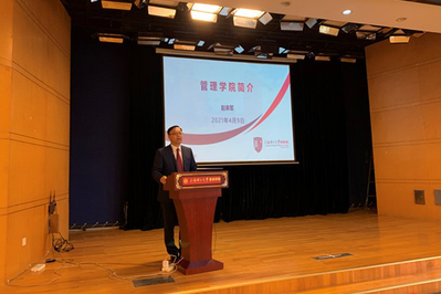 赵来军首先从历史渊源、组织架构、学科专业、师资队伍、科研实力等多角度对管理学院做了总体性介绍,重点展示了学院在国际化、多学科交叉、多实践平台、产教融合、创新创业等方面的办学特色。赵院长根据自身求学经历与工作经验,认为管理在提升企业核心竞争力以及综合国力中发挥着不可替代的作用,希望同学们将专业选择与国家发展相结合,理性选择专业。管理学院将为同学们的成长成才提供强有力的师资、技术和经费支持,促使同学们早日成为具有国际视野和创新精神的复合型、应用型高素质管理人才。