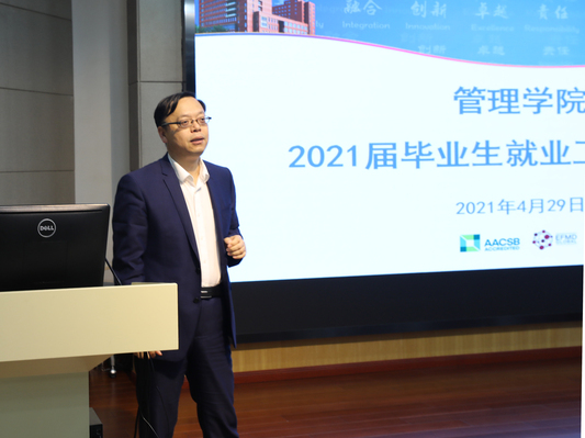 为进一步贯彻落实党中央、国务院、上海市就业政策,有效推动2021届毕业生就业工作,4月29日上午,管理学院于学院报告厅召开了2021届毕业生就业工作推进会。学校党委副书记、副校长盛春出席,校学生工作部、研究生工作部负责人,学院领导班子,各系、各专业负责人,各一、二级学科点负责人及毕业班辅导员参加了此次推进会。会议由管理学院党委书记汪维主持。