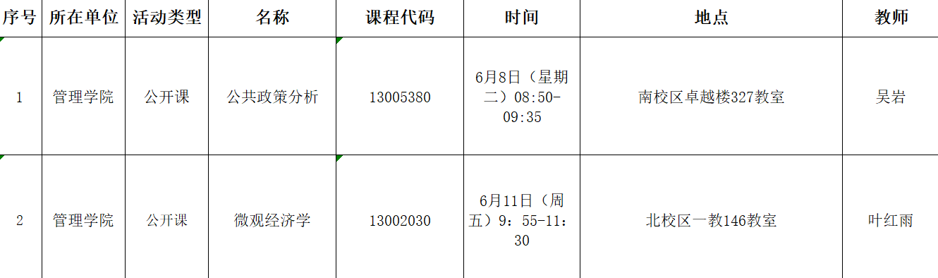 管理学院课程思政公开课信息如下,欢迎各位老师参与。