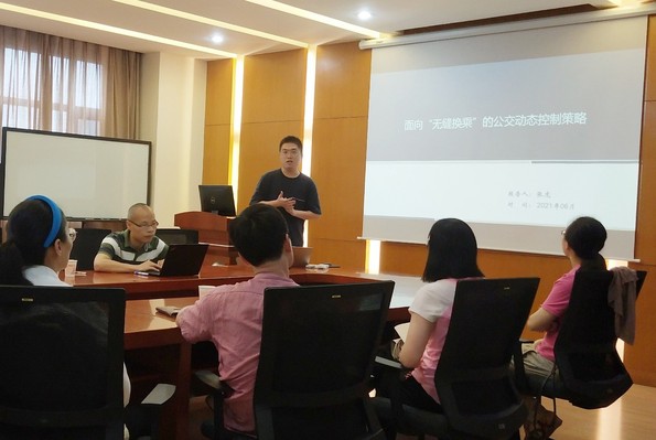 霍良安教授作了题为“跃度驱动的网络谣言/疾病传播问题研究”的学术报告,该报告主要研究网络活跃度驱动的传播模型,利用下一代矩阵的方法得到了谣言/疾病传播的阈值,探索了活跃度对于谣言/疾病的传播阈值与传播规模的促进作用,以及随机干扰对谣言/疾病控制难度的影响。张虎博士作了题为“面向无缝换乘的公交动态控制策略”的学术报告,该报告主要研究常规公交服务目标由直达向便捷换乘转变背景下,以运营层面的实时控制为导向,给出实现无缝换乘的动态控制策略及优化方法和验证算例。