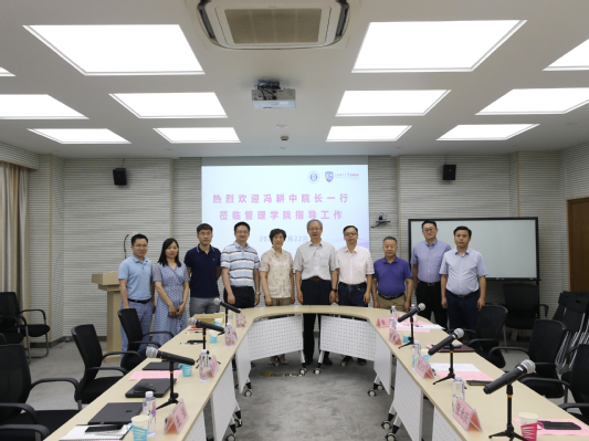 冯院长一行是在结束对东华大学旭日工商管理学院的调研后,在旭日工商管理学院管理科学与工程系副主任吴勇老师的陪同下来我院进行交流,吴勇老师也参加了此次座谈交流。
