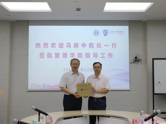 2021年6月22日下午,西安交通大学管理学院院长冯耕中、教授赵玺、副教授王强、学科秘书赵东月一行来我院进行交流,我院院长赵来军,党委书记汪维,副院长张永庆、张峥、何建佳,党政综合办公室主任李莹进行接待,双方在506会议室进行了座谈交流。座谈会由赵来军院长主持。