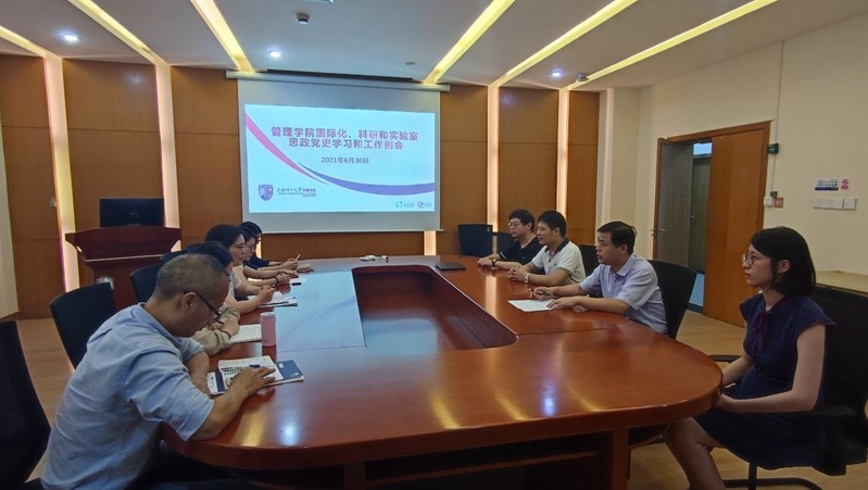 在中国共产党即将迎来百年华诞之际,2021年6月30日下午3点,管理学院国际化建设办公室、科研办公室和实验中心在910会议室联合组织党史学习和工作例会。管理学院副院长何建佳、院务助理霍良安、国际化建设办公室主任韩冰、实验中心主任李季明、以及国际化建设办公室、科研办公室和实验室各部门成员参加本次会议。会议由副院长何建佳主持。