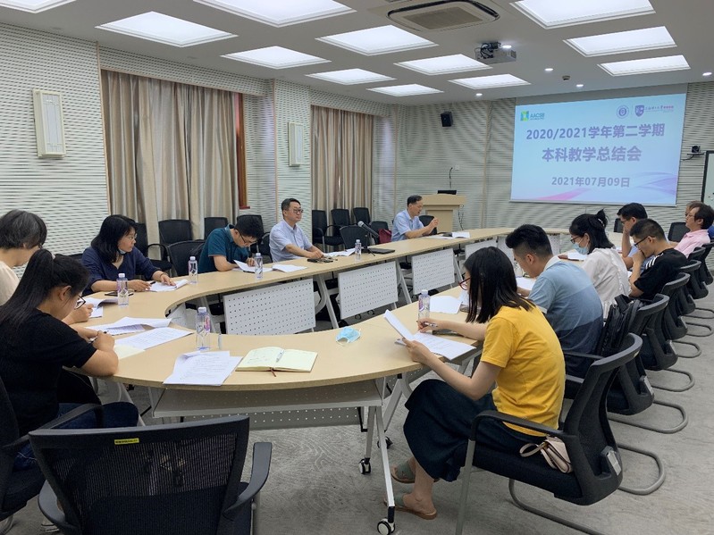 会上,本科教务办主任束义明介绍了2020/2021学年第二学期本科办学绩效、课程思政、产学合作、毕业论文(设计)、日常教学等方面的工作进程、存在问题以及解决措施。