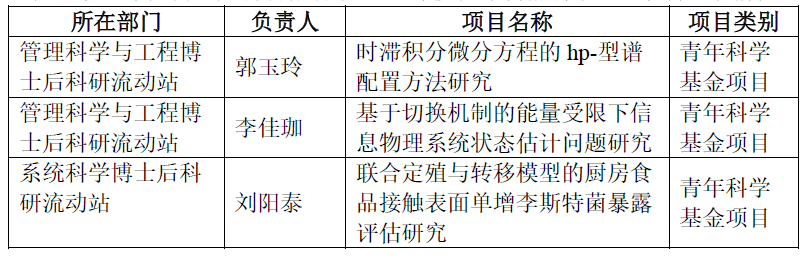 表2 管理学院博士后科研流动站2021年度国家自然科学基金项目立项情况