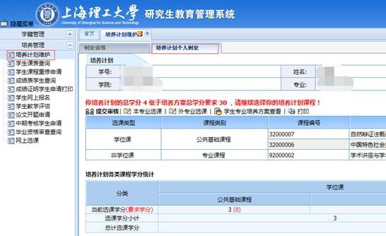 研究生已完成了个人培养计划的制定,本轮研究生个人培养计划调整涉及课程退、改、选、重修申请。