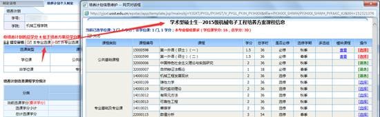 3)部分课程由于选课人数很少,或者其它特殊原因,本学期取消开课(专业课表和系统课表里没有出现此课程),请改选其它课程,务必保证总学分和学位课学分满足培养方案要求,具体操作同2)。