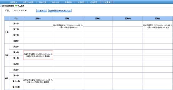 第四步:查看课表,点击“个人课表”,仔细核对选课信息。如果课程是自定义时间地点,则不会出现在课表里,具体请咨询任课老师或学院。