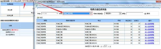 第二步,点击“本专业选课”,弹出本专业培养方案选择对话框;在对话框中进行“选择”和“退选”