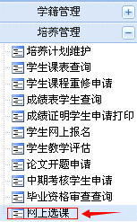 第一步,点击研究生教育管理系统中,“培养管理”菜单下“网上选课”选项卡进入选课系统。
