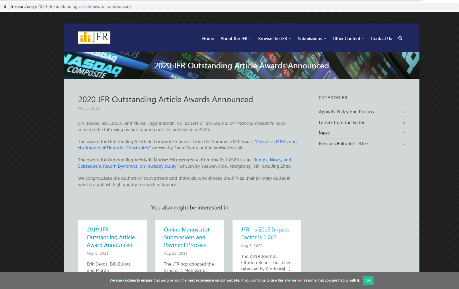 公告链接:https://jfresearch.org/2020-jfr-outstanding-article-awards-announced/
