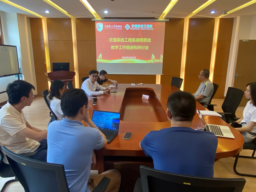 10月15日下午,管理学院交通系统工程系在学院910会议室开展课程思政教学工作推进和研讨会。研讨会由交通系统工程系副系主任刘魏巍副教授和党支部书记姚佼副教授主持,袁鹏程副教授、王嘉文副教授、夏晓梅讲师、李文翔讲师、孙瑜讲师、吴静娴讲师、刘鹏飞讲师等数位教师代表参与了讨论。