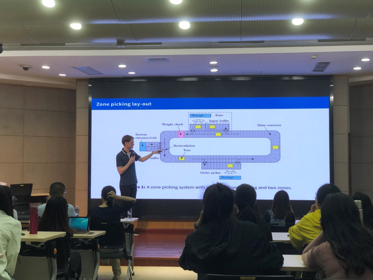 Jelmer Pier van der Gaast博士作了题为“Managing an e-commerce warehouse while dealing with uncertainty”的学术报告,该报告主要利用排队网络对具有不确定性的电子商务仓库进行建模,并针对预先给定的性能目标要求,利用该模型优化设计具有复杂区域的快速分拣系统。