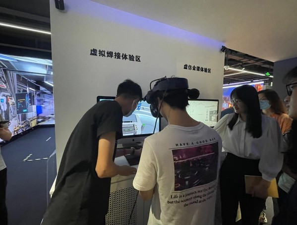 随后,张建国先生带领同学们参观曼恒数字的VR体验室。在体验室里,张建国先生利用公司的虚拟技术,让同学们戴上VR设备体验曼恒数字的VR产品,比如切身体验火灾发生时的应急处理、VR沉浸式游戏以及VR沉浸式党史学习等。“之前在商场也体验过VR项目,但是这回就比较酷了,尤其是那个全景呈现户外实时环境的‘上帝视角’,让我眼前一亮,对VR技术的应用前景抱有无限期待,也希望自己能够成为像稚晖君那样的优秀造梦家。”2018级信息管理与信息系统专业1班的班长王聪在参观体验后谈到。