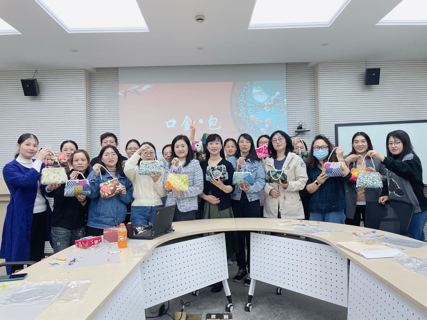 活动不仅吸引了女教师,同时也吸引了男教师,其中不乏博后,教授和博导们。他们用心制作着口金包,准备送给美美的自己,爱人和母亲,小小的口金包寄托了各位老师浓浓的爱。。。。。。
