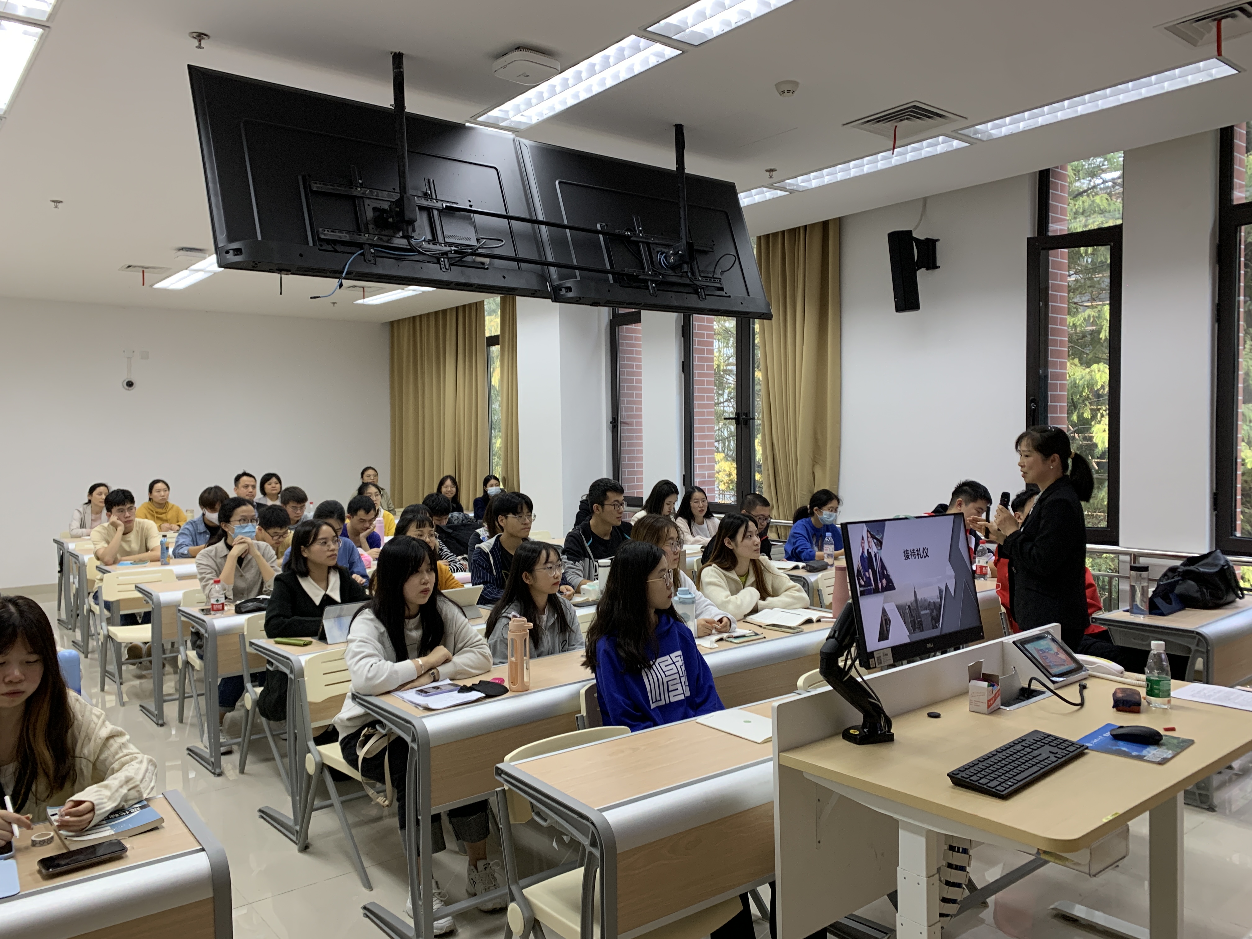 10月27日下午,公共管理系谢媛老师开展了以接待礼仪为主题的公开课,公共管理系部分教师和2019级公共事业管理全体同学参与了此次课程。接待礼仪在《管理文秘》课程内容中仅占很小的比例,但是它是秘书实务——接待工作中的重要关键环节,礼仪是否准确到位会影响到组织的形象和发展。如何在短短的课时内让学生掌握细而繁琐的礼仪,理解接待礼仪背后的原理,并转化成行动,谢媛老师精心设计了“四个结合”,让一节课堂生动有效起来。