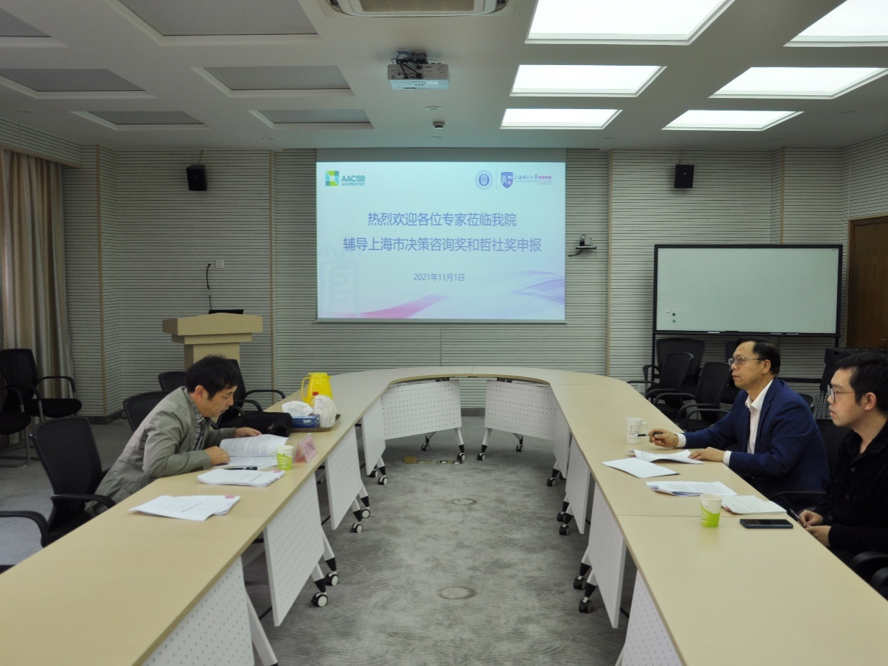 11月1日,沪江经管论坛系列活动(第十期)之上海市哲社优秀成果奖和决策咨询研究成果奖申报“一对一”辅导活动顺利举行。本次辅导活动旨在帮助学院教师更好地准备上海市哲社优秀成果奖和决策咨询研究成果奖的申报,进一步提高我院高质量奖项申请获批的数量。学院邀请了同济大学原文科部主任、国际文化交流学院院长、上海市产业创新生态系统研究中心执行主任陈强教授,上海社会科学院世界经济研究所副所长胡晓鹏研究员,上海社会科学院世界经济研究所国际金融研究室主任、国际金融货币研究中心主任高洪民研究员3位专家莅临辅导。活动由管理学院副院长何建佳主持,学院10余名教师接受了专家一对一的面对面辅导。