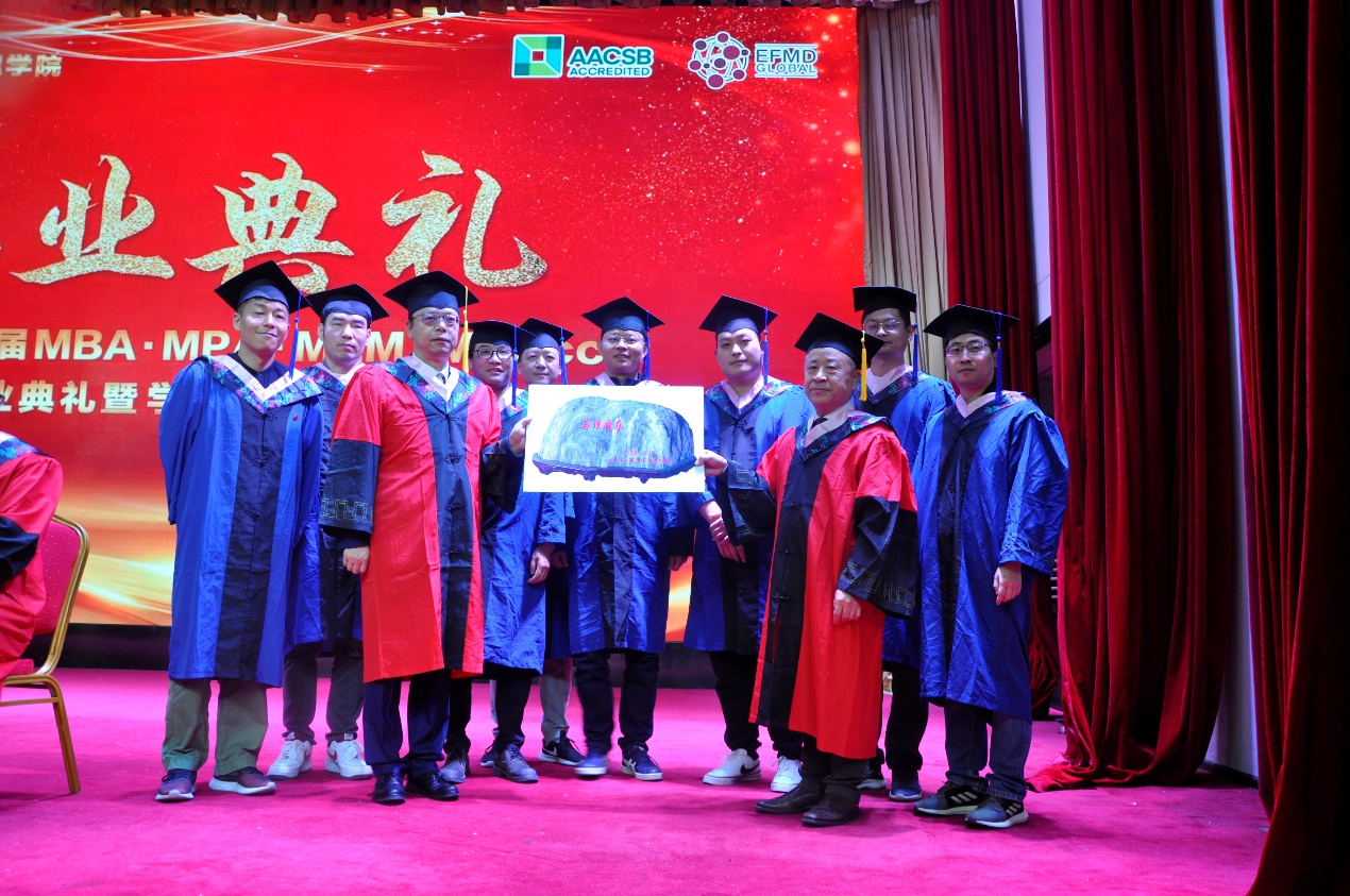 典礼上,毕业生向母校赠送了纪念品。管理学院院长赵来军、副院长张永庆代表学校接受了纪念品赠送。