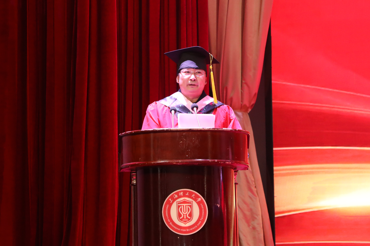 典礼最后,刘平副校长讲话。他首先代表上海理工大学,对各位顺利毕业、取得MBA/MPA/MEM/MPAcc专业学位表示热烈的祝贺!向为学校的教育事业发展付出了智慧与辛劳的教师及员工们表示崇高的敬意!并对以上学生、教师、校友代表的发言给予了充分的肯定。