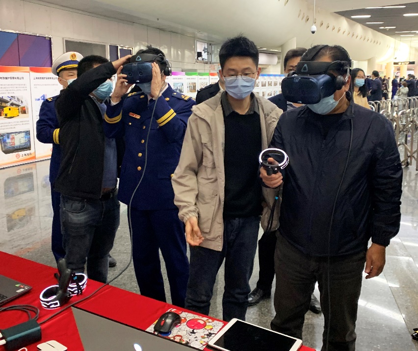 依托系统科学系公共安全系统实验室,房志明教授团队负责“智慧消防”、“三联机制”应用服务的相关研发工作。包括研发基于VR的陕西南路地铁站疏散逃生平台,该平台通过控制诱导信息形式、突发事件属性,灵活构建应急疏散场景,是一种高效的消防安全宣传与培训工具。研发智能疏散策略生成系统,根据地铁站实时客流量数据及现场突发事件情况,形成即时动态的疏散策略。研制智能疏散指示灯具,包括便携式应急疏散指示灯牌和智能疏散指示终端,将动态的疏散策略转化为疏散指示灯具的控制信号,实现对乘客人群的动态引导。当日,受申通地铁集团邀请,团队携带VR疏散平台、疏散策略生成系统、智能疏散指示灯具等参加活动并进行现场演示。