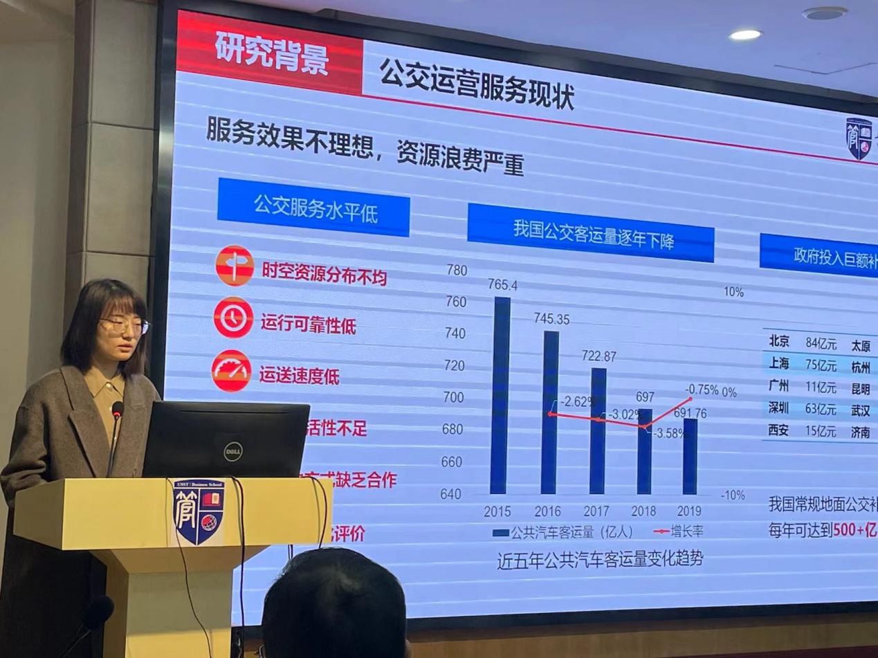 刘心雨讲师作了题为“公交线路服务绩效评价与诊断方法”的学术报告。刘老师主要从研究背景、方法构建、案例分析三个维度展开演讲。首先,通过三主体分析指出当前公交路线服务绩效评价当前面临的难点、痛点。接着,以服务绩效评价模块和低效线路诊断模块为出发点,向大家详细的介绍是如何进行公交服务绩效评价方法构建。最后,为使大家对公交线路服务绩效评价与诊断方法有详细的认识,刘老师以济南市公交路线为例详细为大家介绍了DEA相关模型在提升公交线路服务绩效评价上的应用。