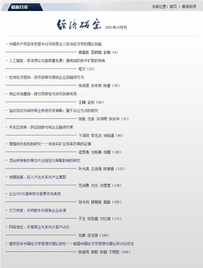 《经济研究》创办于1955年,是全国性综合经济理论期刊,由中国社会科学院经济研究所主办、中国社会科学院主管,是全国各高校、研究机构公认的经济学权威期刊。