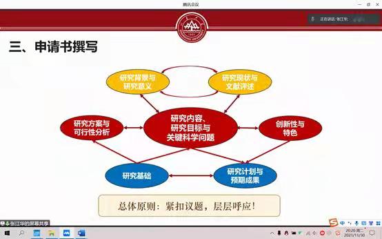 11月30日,沪江经管论坛系列活动(第十七期)之国家自然科学基金项目评审与申报交流会在线上顺利举行。本次会议旨在帮助学院教师更好地准备国家自然科学基金项目的申报,进一步提高我院国家级项目申请获批的数量。学院邀请山东大学管理学院张江华教授进行线上辅导。会议由管理学院院长赵来军主持,副院长何建佳、学院科研办、2022年国家自然科学基金项目申请人等140余名教师参与线上会议。