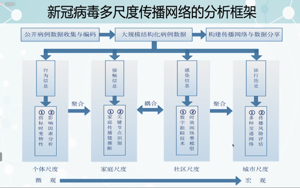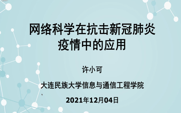 许小可教授做题为“网络科学在抗击新冠肺炎疫情中的应用”的报告,许小可教授是大连民族大学数据科学与大数据技术学科方向负责人,信息与通信工程学院授教授。主要研究方向为:社交网络大数据,数据可视化、计算传播学等。先后主持国家自然科学项目基金项目4项,已在Science、Nature Human Behaviors、PNAS等知名期刊发表学术论文60余篇,SCI他引1600次,H指数为20。他将网络科学与新冠疫情COVID-19相结合,通过收集和编码公开病例数据,分析了新冠病毒的多尺度传播网络、流行病学特征及传播动力学的动态变化,向我们介绍了复杂网络系统理论在新冠疫情COVID-19传播防控中的研究进展,指出上海精准防疫的基石是大数据技术与网络科学,并为预防可能的“疫情秋冬季爆发”提供了政策建议。