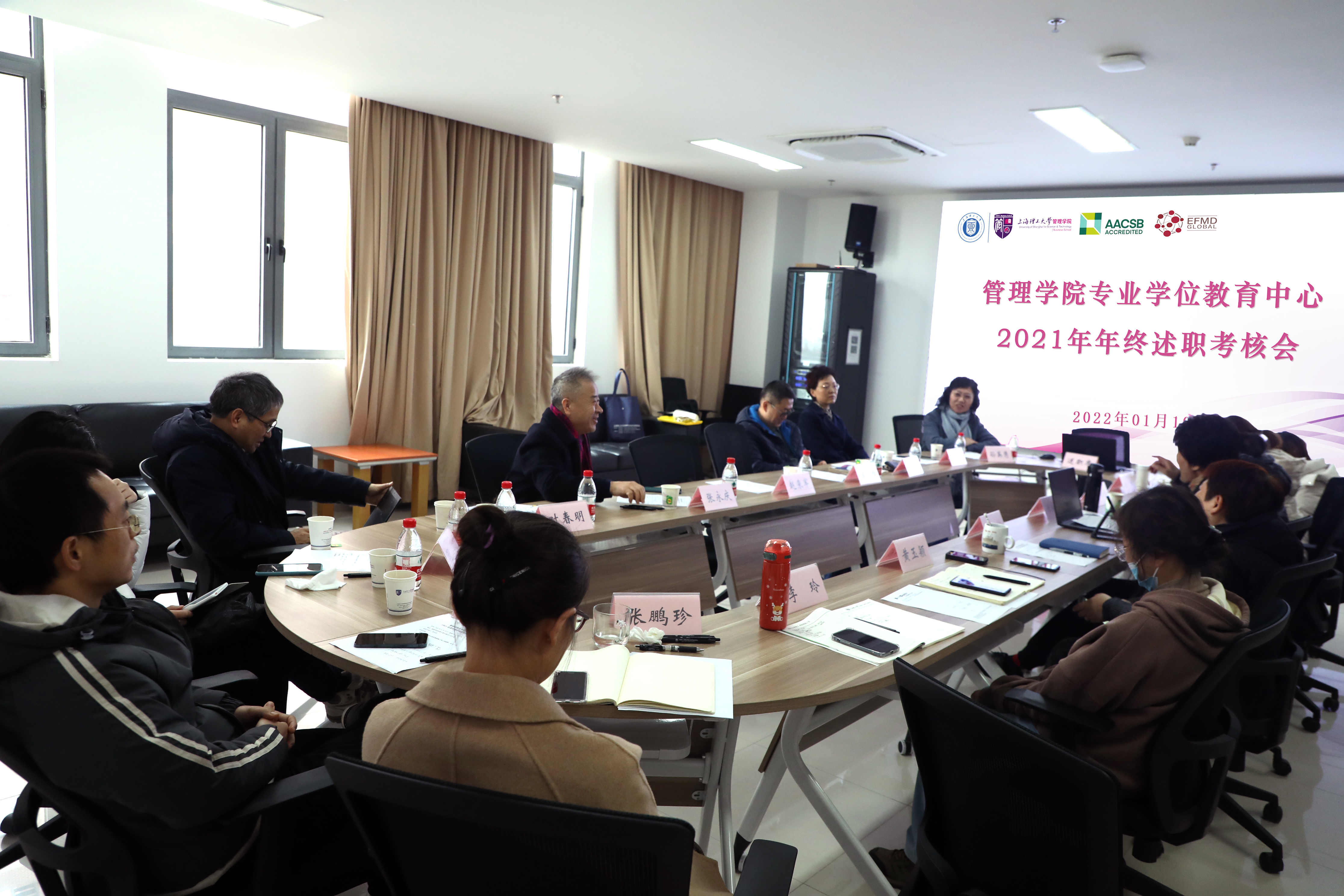 2022年1月10日上午,管理学院专业学位教育中心在管理学院经管大楼B楼605会议室召开了2021年度年终述职考核会。管理学院副院长、专业学位教育中心副主任张永庆,、副院长兼MBA项目主任张峥、MPA项目主任车丽萍、MEM项目主任叶春明、MF项目主任孙英隽、MIB项目代表闵闵老师、MT项目代表田发老师,以及专业学位教育中心办公室全体工作人员参加了本次会议。会议由张永庆副院长主持。
