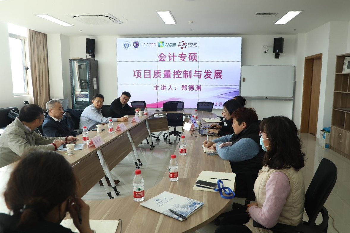 3月4日下午,上海国家会计学院研究生部主任郑德渊副教授应邀做了关于“会计专硕质量控制与发展”的经验交流讲座。副院长兼专业学位教育中心副主任张永庆教授、会计学学科带头人宋良荣教授、会计专业学位中心项目副主任于谦龙副教授,导师代表宋鑫、黄晶、何鹏蔚老师以及专业学位中心办公室王永联、周纳等相关老师出席,讲座在经管大楼B楼605会议室举行,会议由于谦龙老师主持。