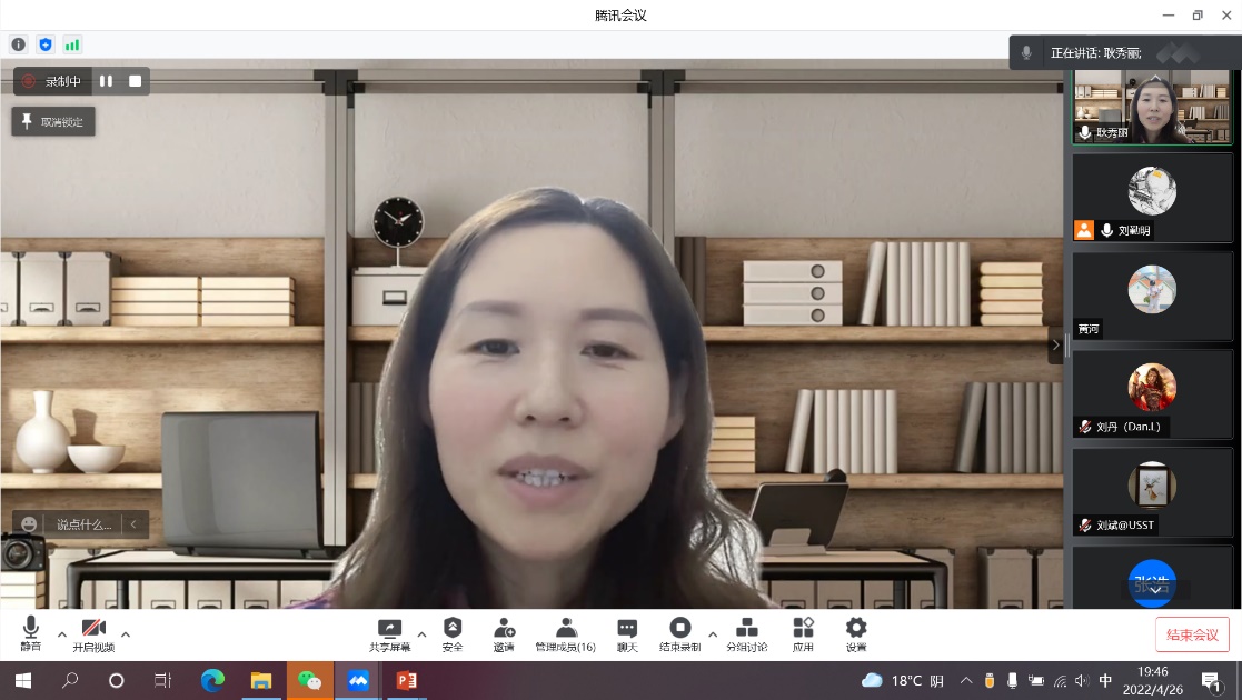 耿秀丽老师分析了课程在线教学改革的价值取向,指出了在线教学的两大挑战:一是师生缺少互动,二是不能及时收到反馈,难以立即评估学生学习状态。在本科生教学中,学生可以控制听课节奏,因此可以提前告诉学生需要思考的重难点。通过一网畅学平台,提前布置学习题目,课上再进行提问,强化学习效果。在研究生教学中,通过腾讯会议进行直播,一网畅学平台具备选人功能,可以进行随堂回答问题和作业,实时把握学生学习进展。