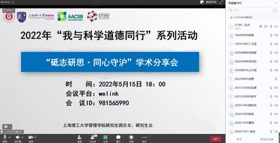 “砥志研思·同心守沪”学术分享会是管理学院2022年“我与科学道德同行”系列活动之一,由管理学院团总支、研究会主办。“我与科学道德同行”系列活动是管理学院推动学风建设的品牌活动,已持续举办10年。