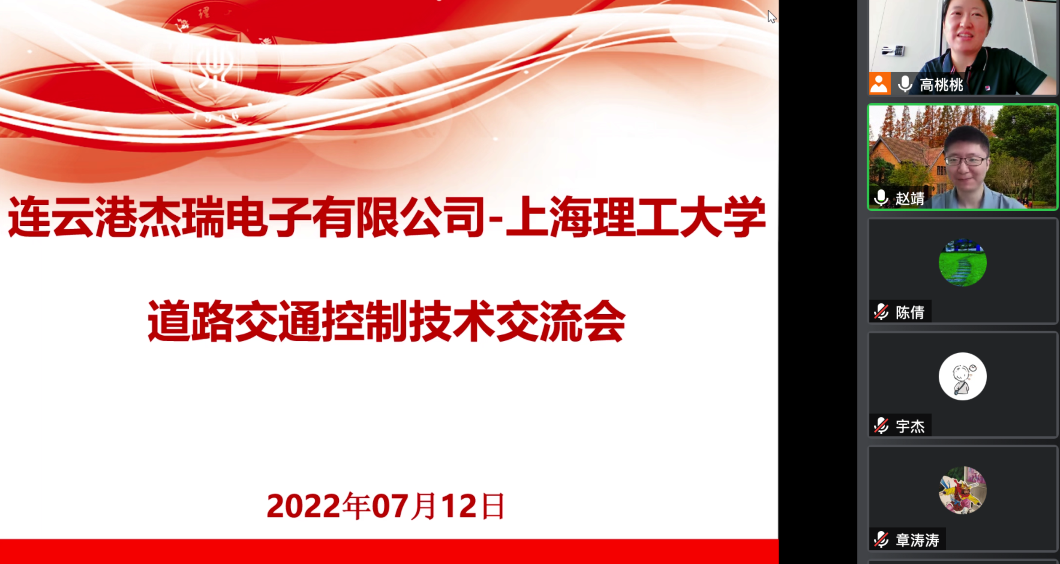7月12日,连云港杰瑞电子有限公司(以下简称杰瑞电子)与交通系统工程系举行线上技术交流会。杰瑞电子智慧城市事业部副总经理高桃桃、智慧城市事业部副总经理朱圣发、车路协同事业部部长章涛涛、车路协同事业部副部长张新军、南京研发分部主任张宇杰、上海理工大学管理学院交通系统工程系系主任赵靖以及教师和博士后代表刘鹏飞、陈倩、章程出席本次会议。交流期间,校企双方围绕科研服务、科研项目申报等方面展开深入探讨。